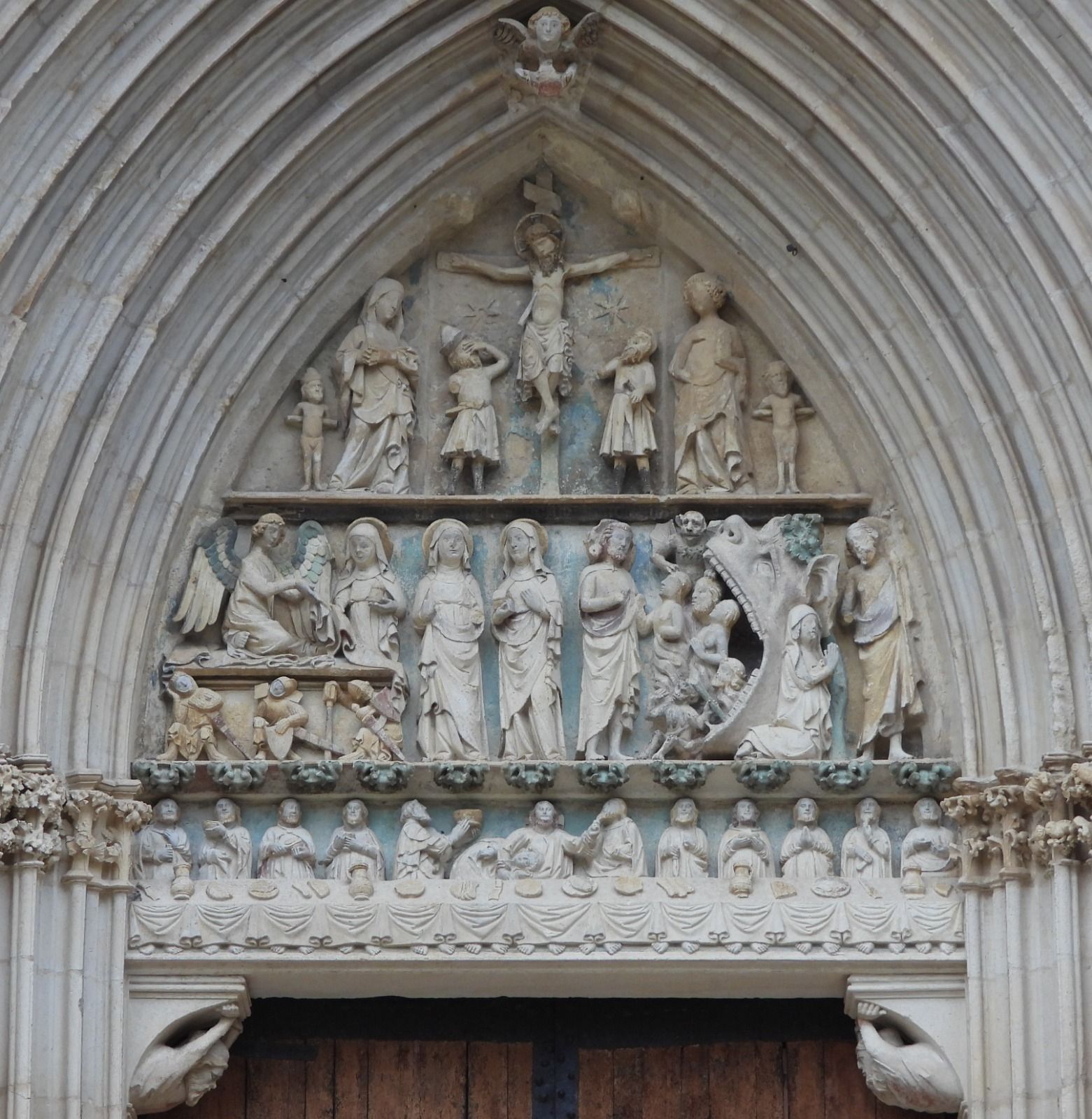De nuevo de la mano de Clara Fernández, se explicaron todos los detalles iconográficos que encierra su interesante portada en cuyo tímpano hay tallados una serie de pasajes relacionados con la Pasión y Resurrección de Cristo: Última Cena, Crucifixión, Resurrección, Descenso al Limbo (Anastasis) y Aparición a María Magdalena.