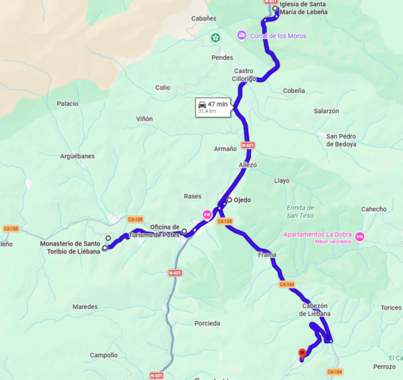 Situada en la comarca de Liébana, en un entorno natural privilegiado, esta iglesia combina sencillez exterior con una gran riqueza artística en su interior. Sus columnas y capiteles muestran una decoración detallada que refleja la importancia cultural y religiosa del lugar en la Edad Media.