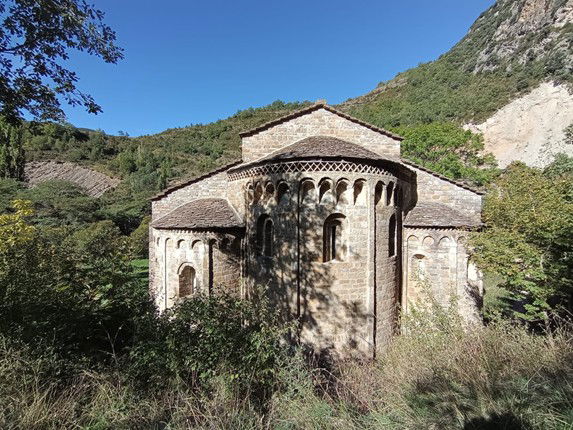 En Graus se nos unió el profesor D. Francisco Martí Fornés, verdadero experto y conocedor de la zona hasta de sus más recónditos lugares románicos o de cualquier índole , de camino nos enseñó el puente rómanico de ocho ojos del pueblo de Capella, así como la ubicación de las ermitas de San Martín ( en ruinas) San Ramón y Santa Eulalia , siguiendo la carretera la ermita de Nuestra Señora del Llano del pueblo de Lagarrues, situada al lado del cementerio.