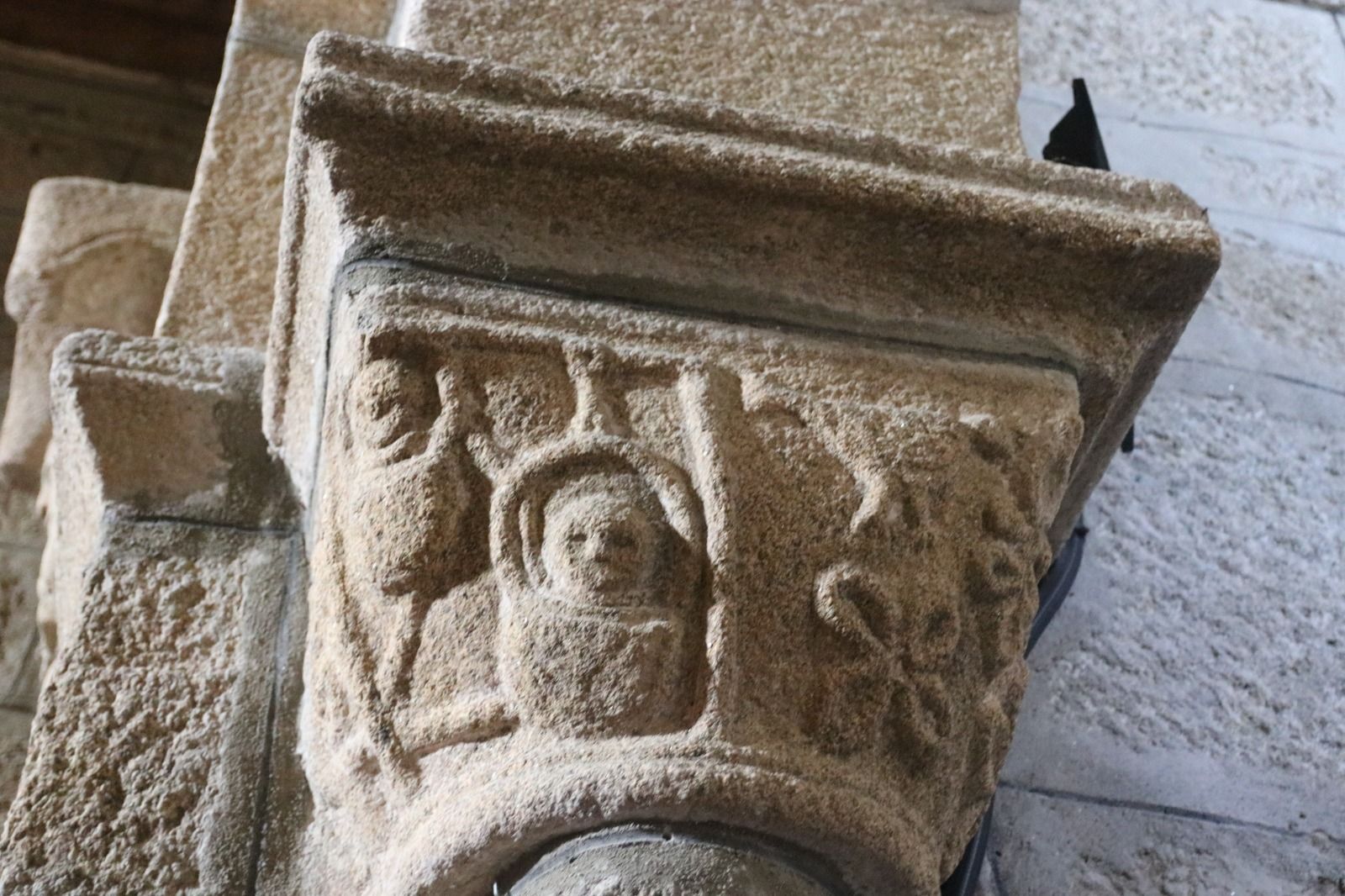 Seguimos camino hacia la última visita de esta jornada que es la iglesia de San Xoan de Sadurnín por una carretera llena de curvas que permite a Jesús lucir su destreza. La iglesia de San Xoan es tardía, probablemente del siglo XIII y realmente tiene pocos detalles de interés. El ábside es completamente nuevo y únicamente se conserva el arco triunfal con dos capiteles curiosos. El capitel del lado norte muestra una imagen con unos niños fajados, como era habitual en la Edad Media, que realmente nadie sabe cuál es su significado. Pero aún es más extraño el capitel de lado sur con una representación de un conjunto de elipses concéntricas de las que incluso se ha propuesto una teoría según la que serían imágenes de vulvas, lo cual realmente parece extraño en un contexto como en el que se produce. En todo caso nadie tiene claro qué pueden representar.